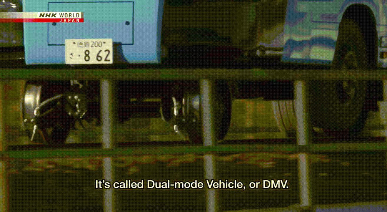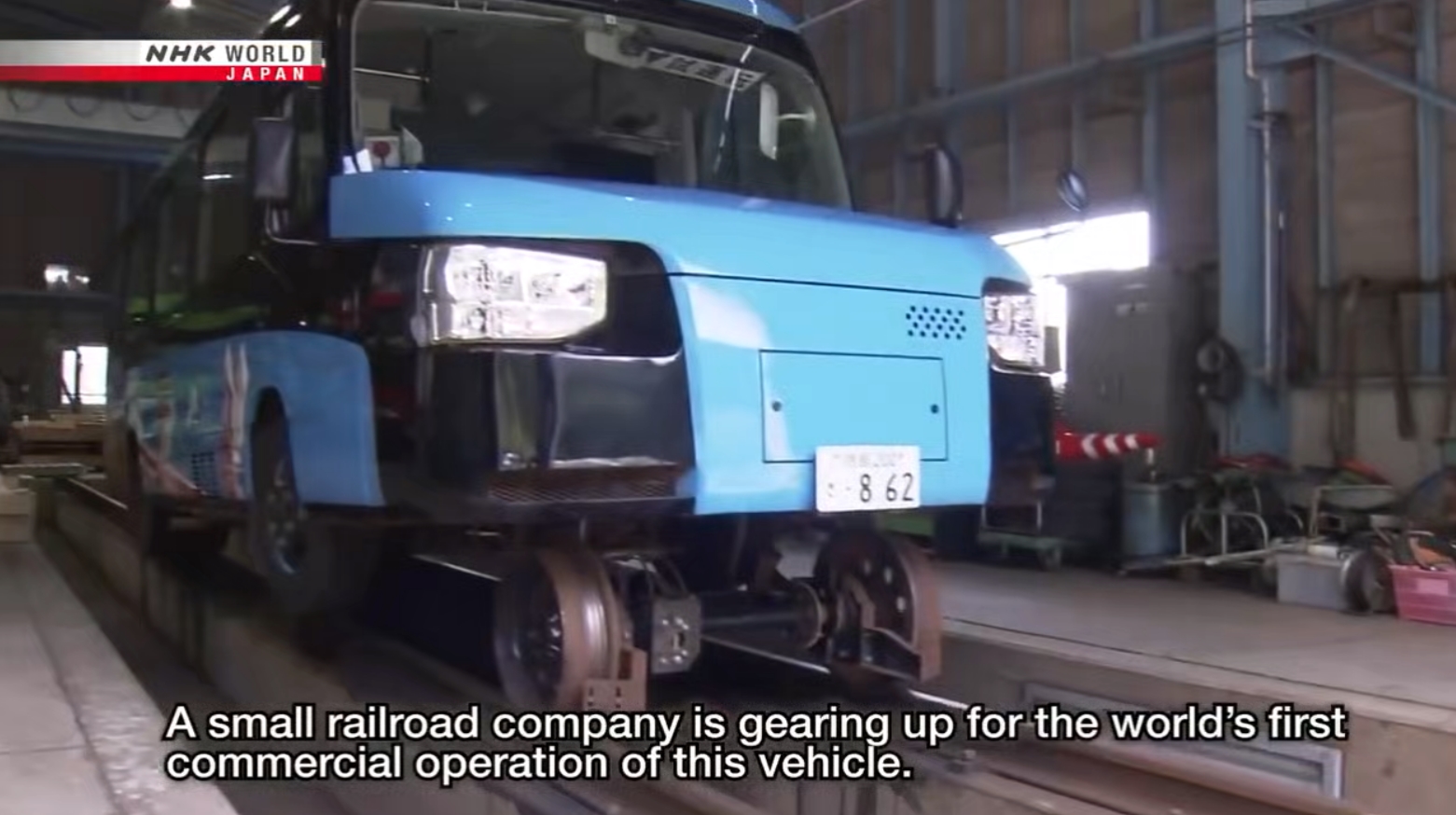 일본 토쿠시마의 한 전철 회사에서 상업 서비스를 계획중인 bus-train hybrid 차량
