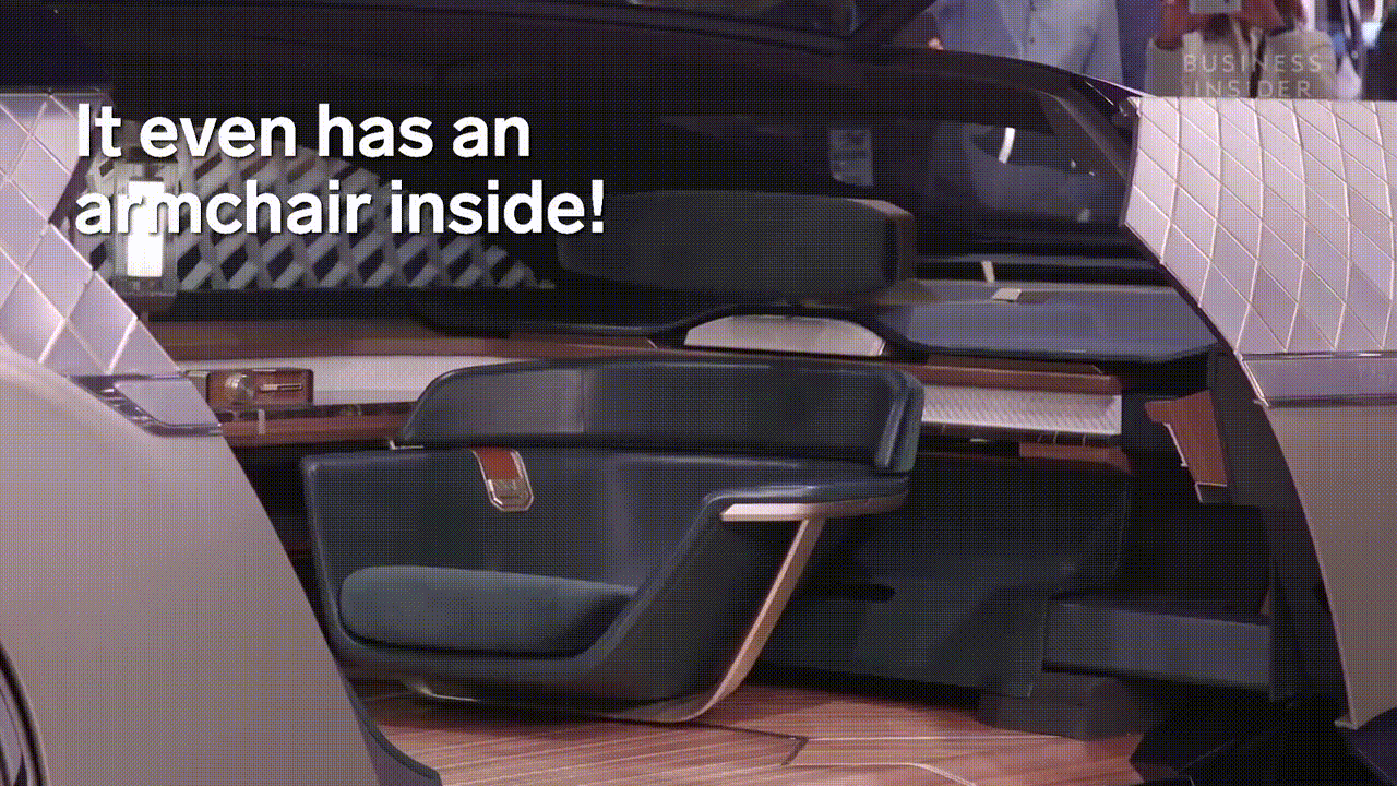 자율 주행차이니 만큼 운전하는 공간자체가 아예 없는 혁신적인 디자인을 가지고 있으며 3명의 사람이 내부에 탈수 있으며 100% 전기로 운행이 된다.