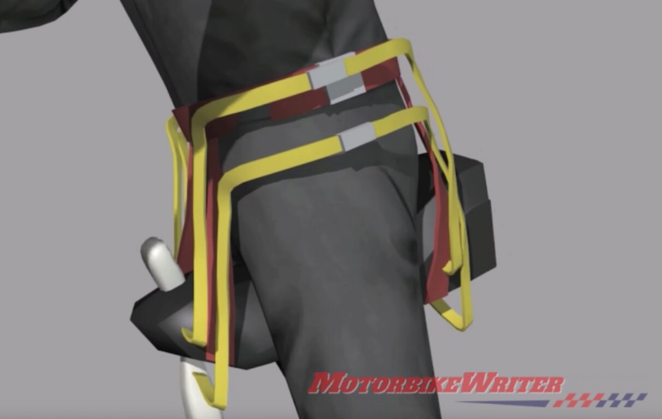 벨트형 에어백으로 일정속도 이상에서 갑작스러운 움직임을 센서로 감지하여 에어백이 부풀어 전신을 보호해준다고 한다.