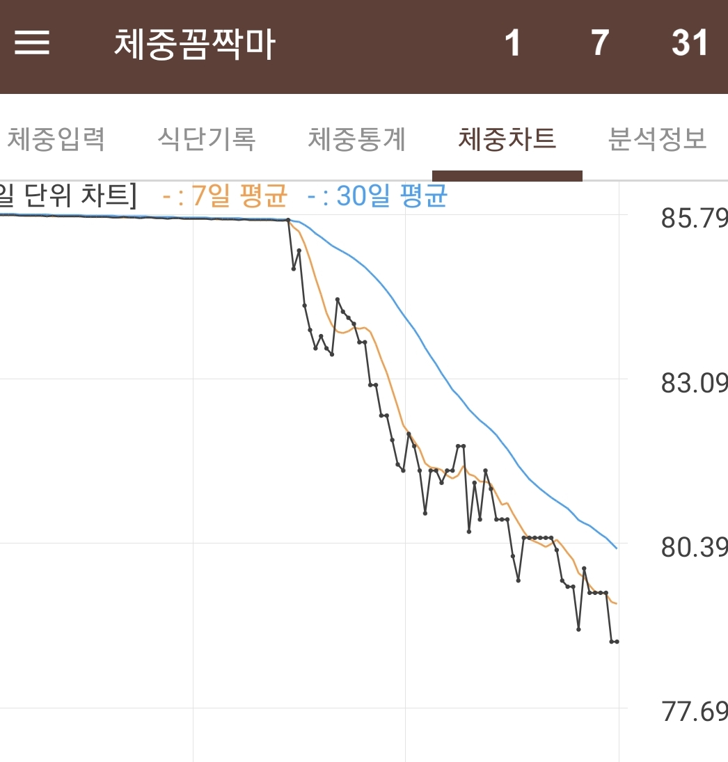 08월 06일 : 78.8kg으로 6.9kg 감량 (2달째)