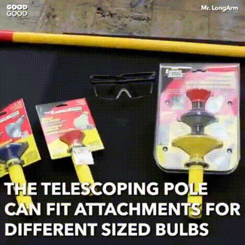 높이 있는 천장에 전구가 달려 있다 하더라도 폴(Pole)을 늘려 천장까지 닿게 해줄수가 있어 사다리 같은 보조기구가 필요없다.