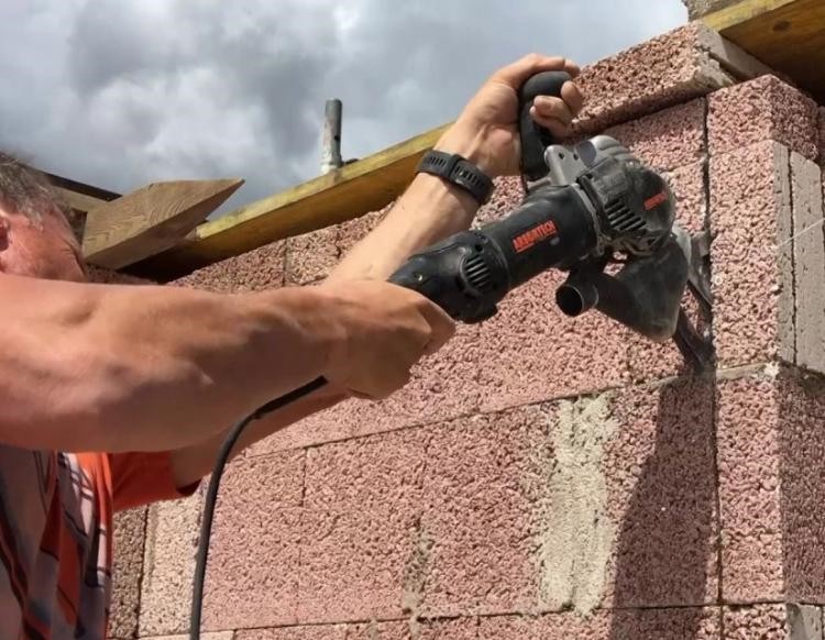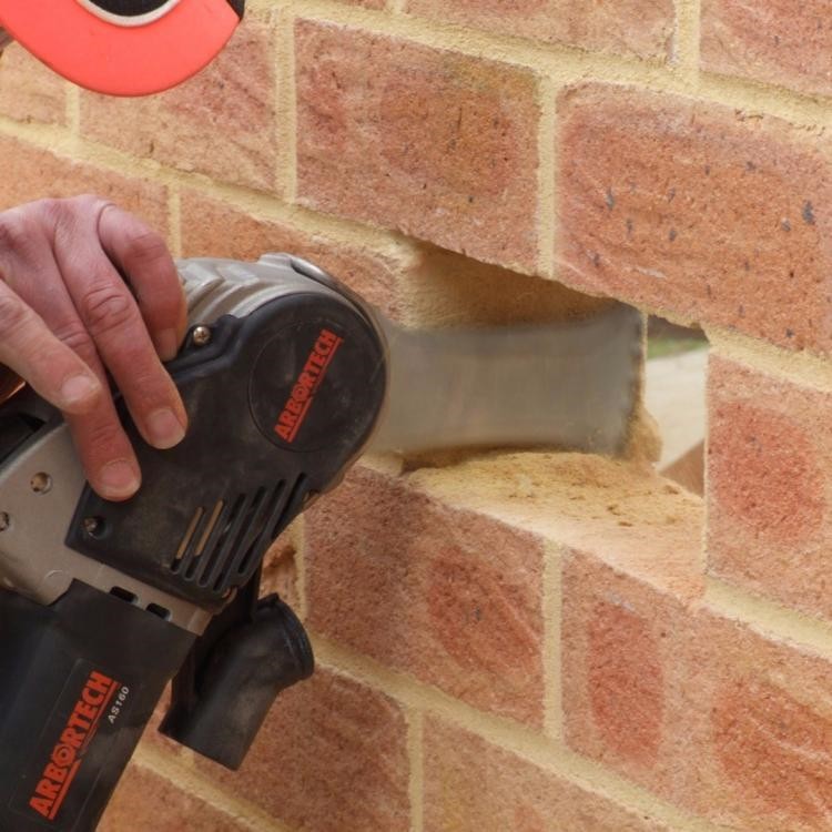 벽돌을 교체하거나, 쌓아놓은 벽돌에 창문틀을 낼때 사용하는 절단 공구이다.
