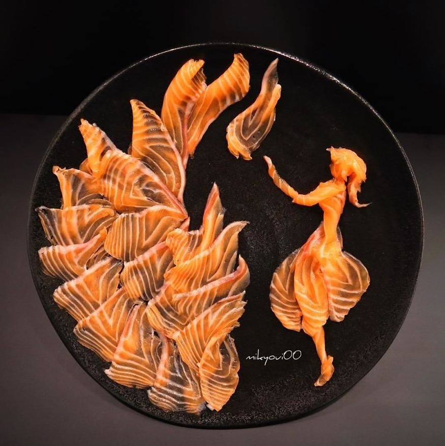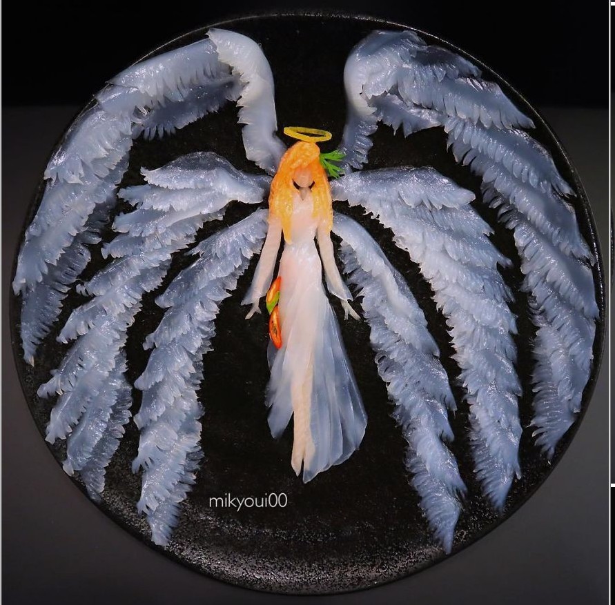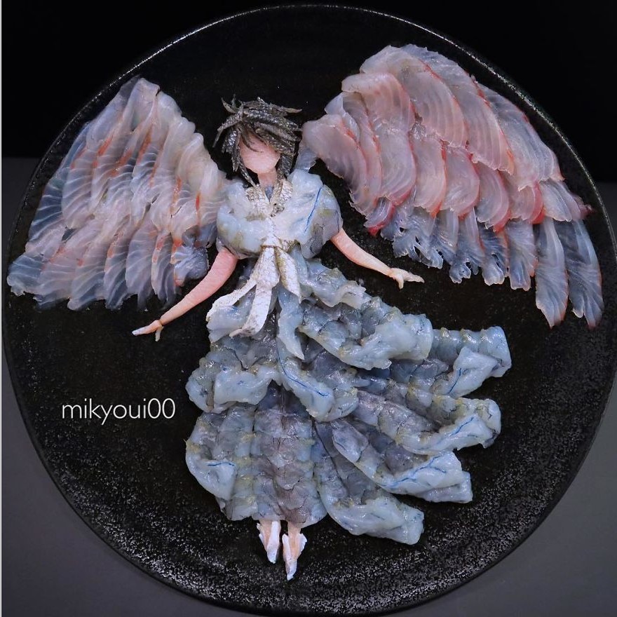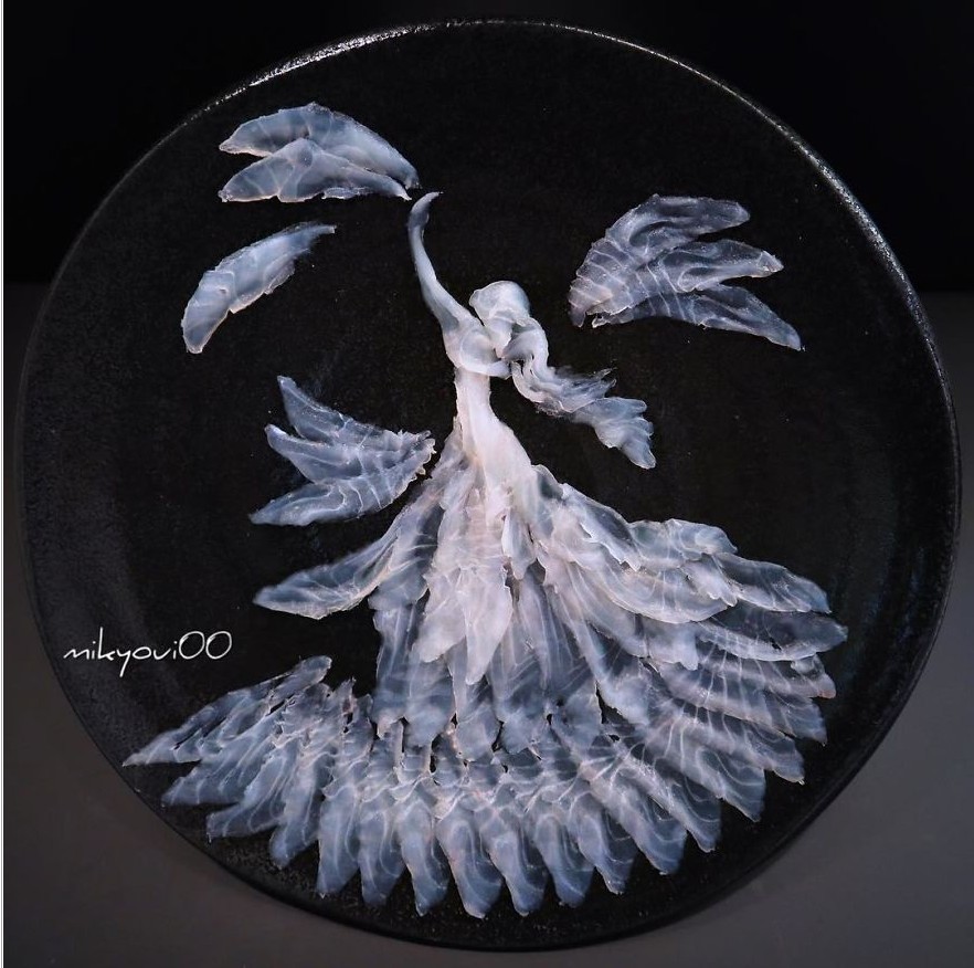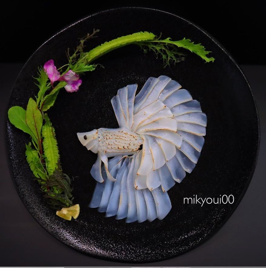 아이들에게 회를 만드는 법을 가르쳐 주고 싶어서 유튜브와 인터넷으로 공부를 하여 이런 작품까지 만들었다고 한다.
