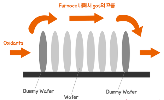 웨이퍼는 원래는 순수한 Si으로 되어 있으나 공기중의 산소와 만나 자연적으로 아주 얇은 산화막인 SiO2가 형성이 되어 있으나 이후 반도체 공정에서 충분할 만큼의 산화가 이뤄지지 않았으므로 강제적으로 산화를 시켜 SiO2 막의 두께를 올리게 된다.