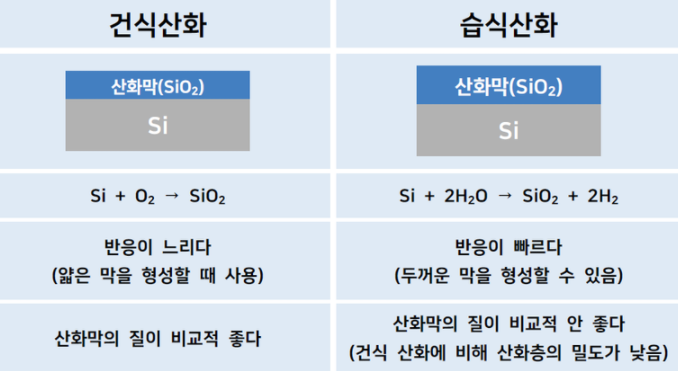 이러한 산화공정에는 건식 산화와 습식 산화가 있다.
