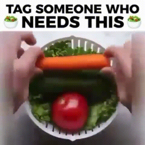 샐러드를 일정한 양으로 안전하게 자를수 있게 도와주는 주방 보조기구