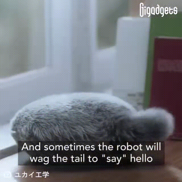 Qoobo는 부드러운 털로 덮혀져있으며 꼬랑지를 흔드는 쿠션 로봇이다.