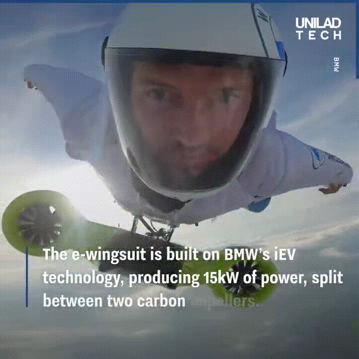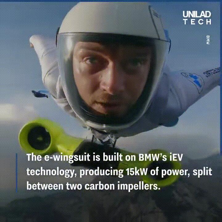 e-wingsuit은 BMW의 iEV 기술로 기반되었고 15kW의 출력을 낼수가 있다고 한다.