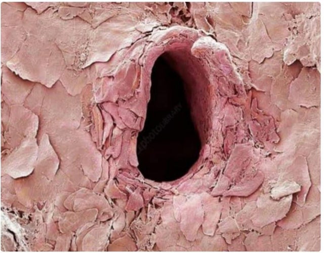 바늘에 찔린 후의 사람 피부를 주사전자현미경(SEM)으로 확대