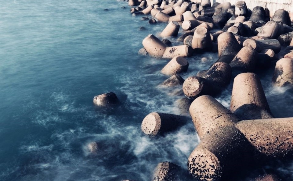 바닷가 방파제 모습을 띄어 미끄러지지 않는 비누