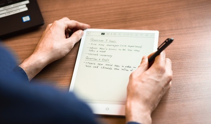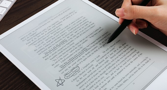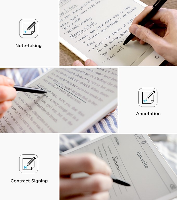 전자책뿐만 아니라 테블렛 기능까지 포함되어 있고 삼성 스마트폰에 적용된 와콤 필기도구 기능이 더해져 필기, 메모등을 할수도 있으며 물론 e-ink의 한계로 칼라는 구현은 되지 않으며 안드로이드 OS를 사용한다고 한다.