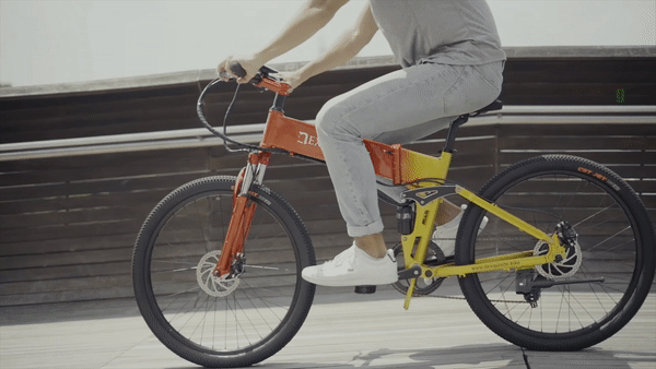 일반 전기자전거와 이 자전거가 다른점은 내리막길 혹은 발로 페달을 밟는 동작으로 자전거의 배터리가 자동 충전이 된다.