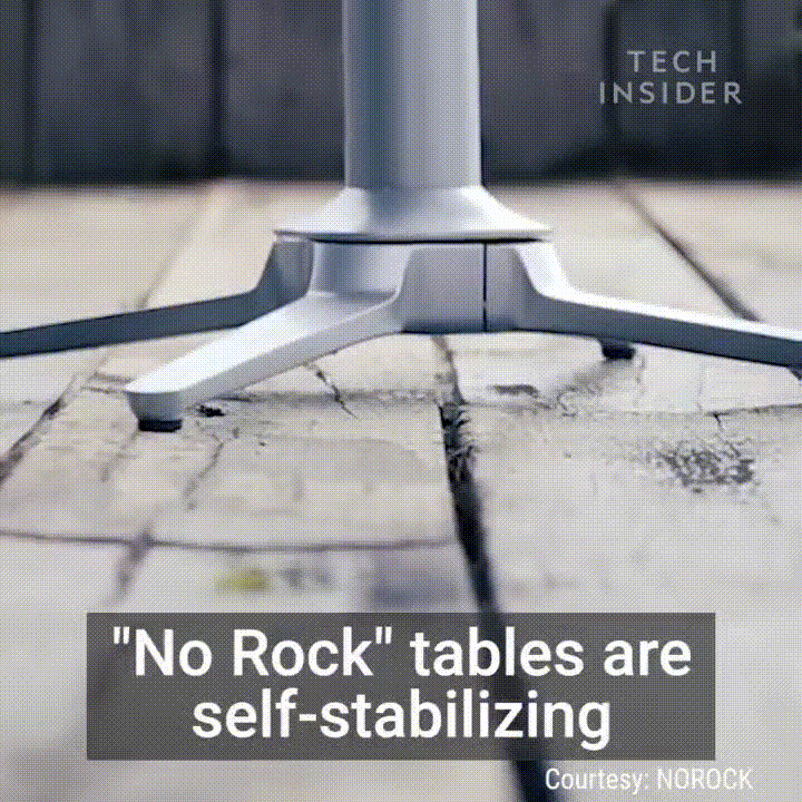 바닥이 요철이 있어도 테이블을 받치고 있는 4개의 다리가 요철에 맞게 알아서 구부러져 알아서 테이블의 수평을 맞춘다.