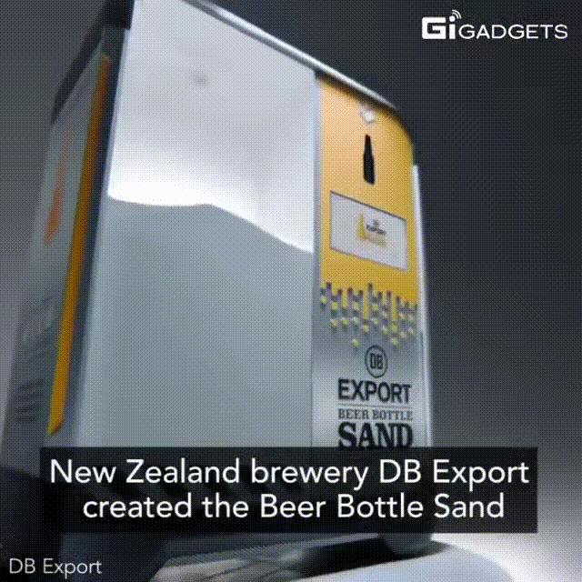 뉴질랜드의 DB Export라는 양조업체에서 개발한 해변가의 모래를 보호하기 위해 유리병을 재활용 해주는 기계로 수초만에 맥주병을 파쇄하여 모래 대체제로 만든다.