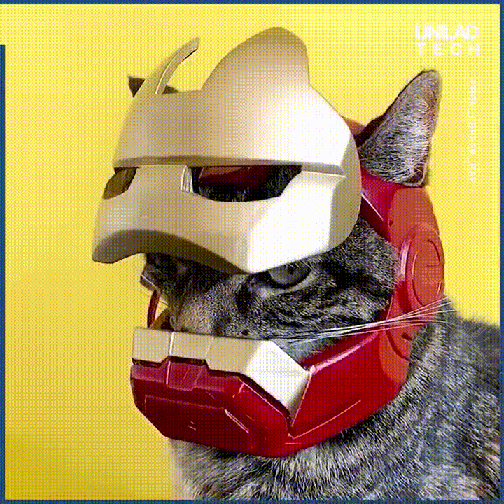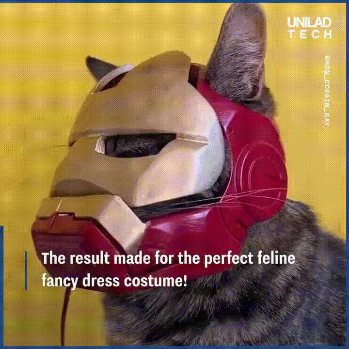 3D 프린터로 제작한 고양이용 아이언맨 마스크