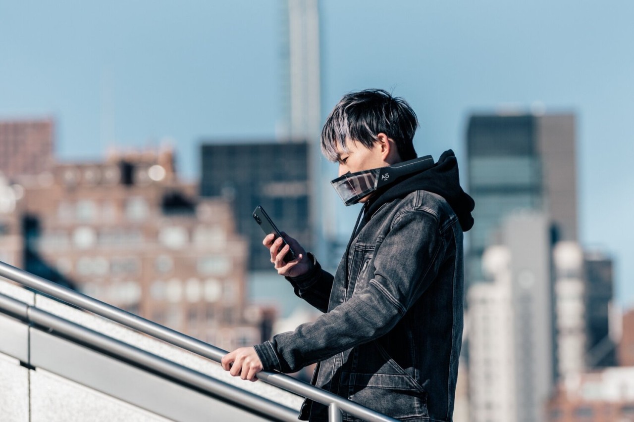 Atmos라는 이 마스크는 코와 입을 완전히 격리하고 필터와 펜을 이용하여 맑은 공기를 지속적으로 공급하는 것이 특징이다