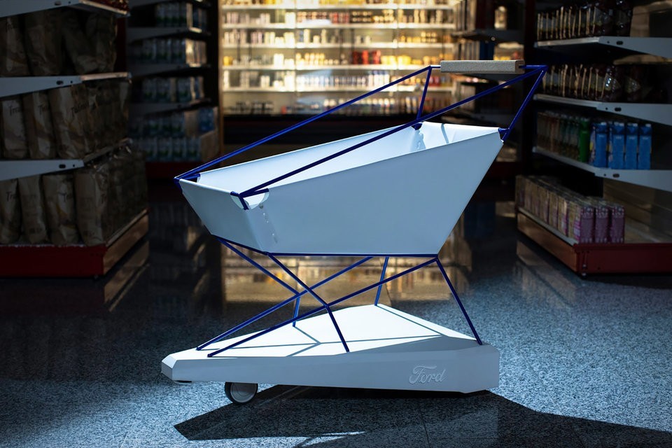 포드 자동차의 전방충돌 방지 기술을 쇼핑카트에 적용하였는데 이 기술은 센서를 이용하여 앞에 있는 사람이나 물건을 탐지하여 충돌할 것 같으면 브레이크로 멈추도록 한다.