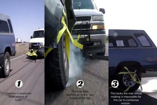차량으로 도주하는 범죄자를 쉽게 잡기 위해서 도주 차량의 뒷바퀴중 하나에 그물망을 얹혀놓으면 더이상 바퀴회전이 되지 못하고 차량은 멈추게 된다고 한다.