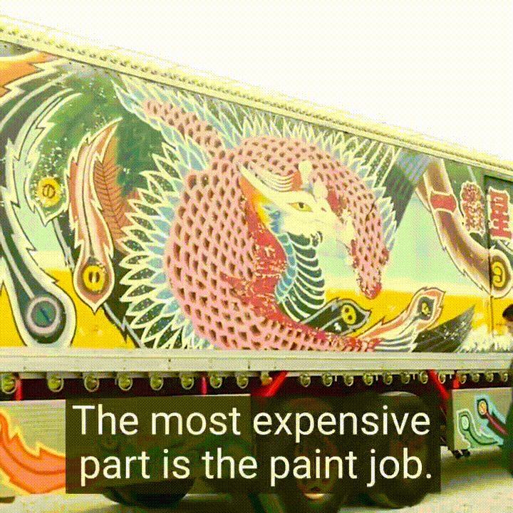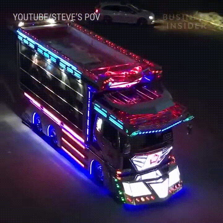 물론 데코토라 트럭으로 상업적인 일은 하지 않고 거의 개인적인 표현으로 수많은 플래쉬, 화려한 내부 장식(샹들리에등)과 소재(루이뷔통 가죽)로 구성이 되었다.