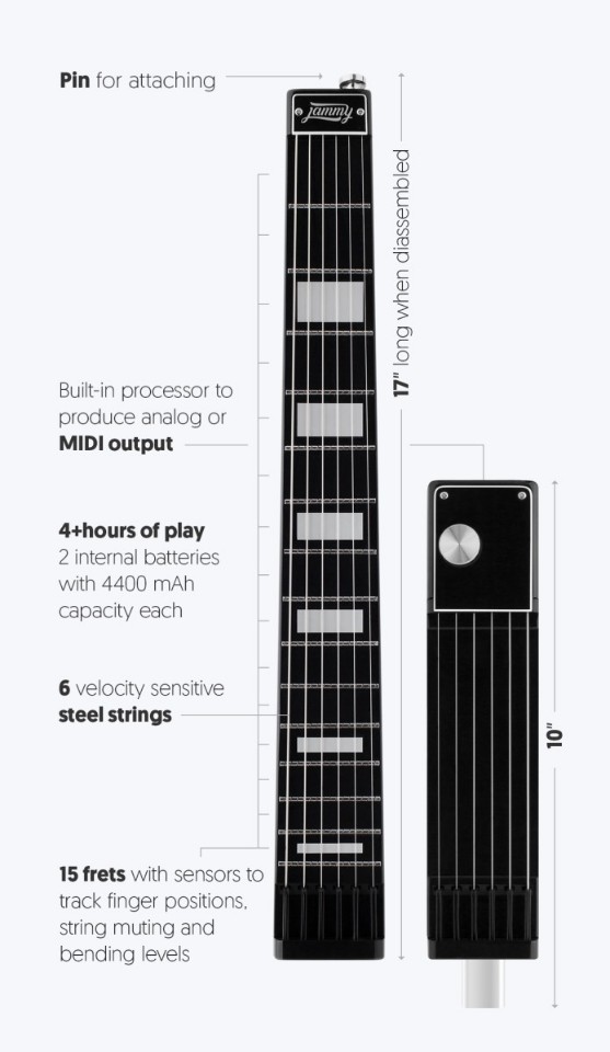 조립을 하면 일반 크기의 기타이지만 들고 다니기는 불편하여 여러개의 모듈로 분리를 하여 휴대성을 높혔다.