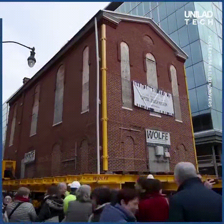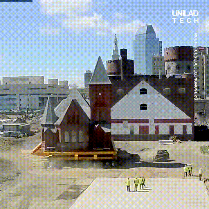 건물을 크레인과 호이스트등 으로 파고 들어올려 이동을 시킨다.