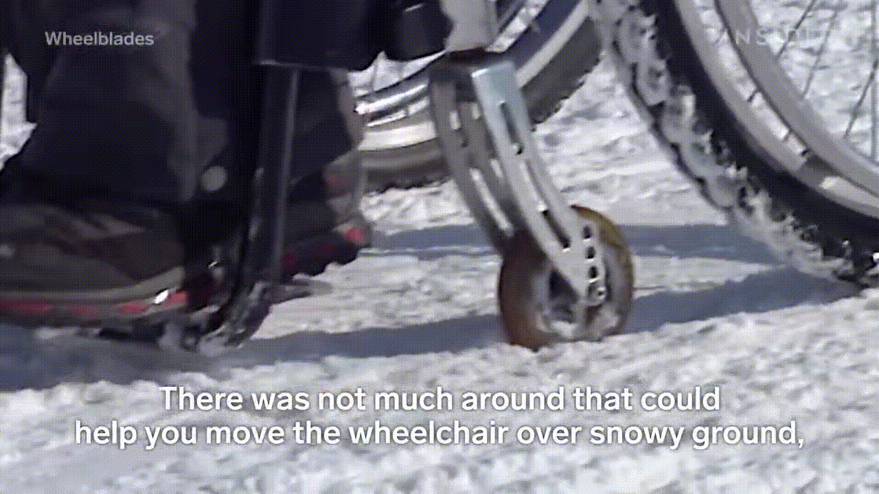 이 부착물은 윌체어를 탄 사람도 눈길에서 쉽게 이동을 할수 있게 도와준다.