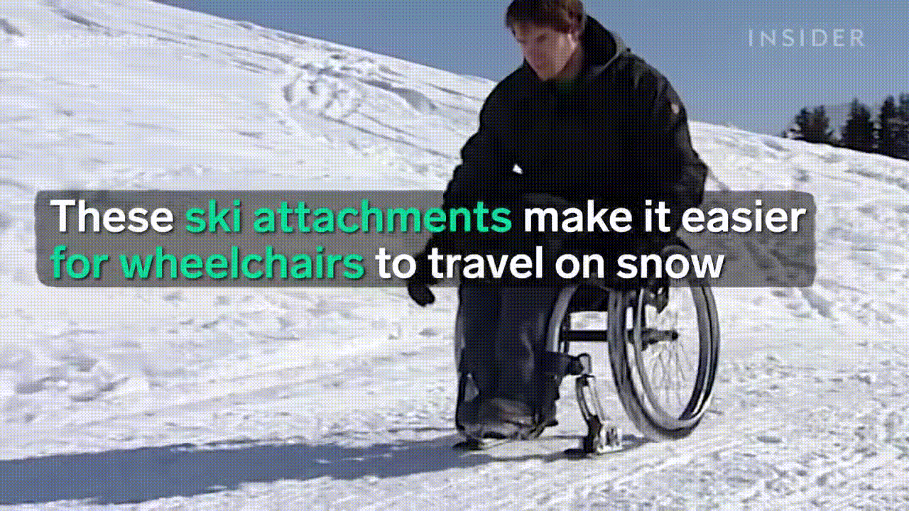휠체어에 몸을 의지한 사람도 스키를 탈수 있게 도와주는 장치