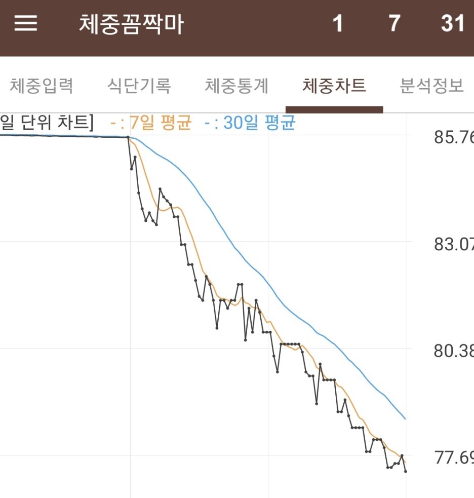 08월 24일 : 77.3kg으로 8.4kg 감량 (2달 17일째)