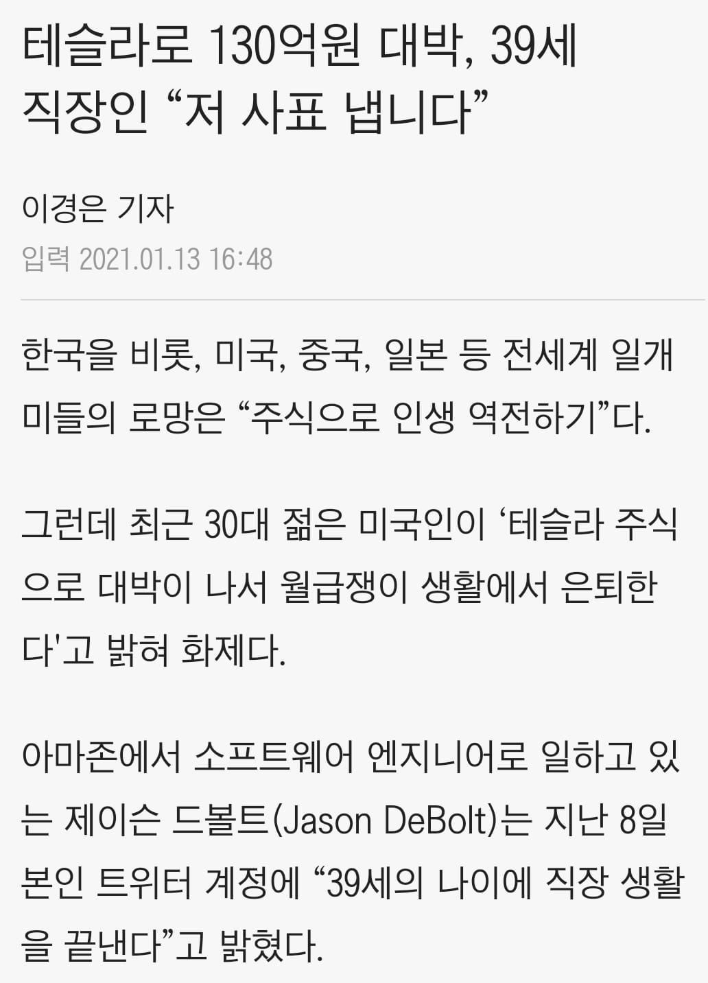 (1) 2021년도인 지금 테슬라 주식을 2010년도에 600만원어치 샀으면 지금 10억이 되었을텐데라는 후회성 말과