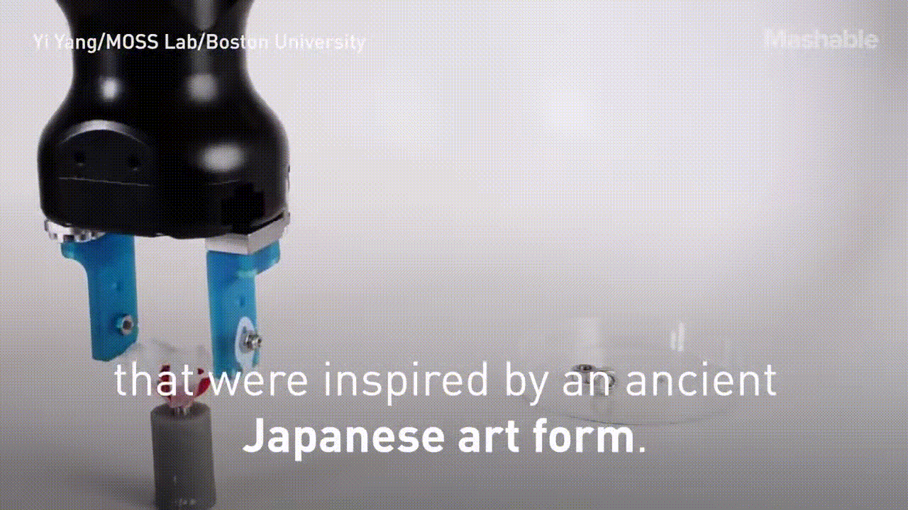 연구진들은 이런 종이접기 기술을 플라스틱에 적용을 하여 로봇 집게를 개발하였고 각기 다른 물체들을 안전하게 잡을 수 있다고 한다.