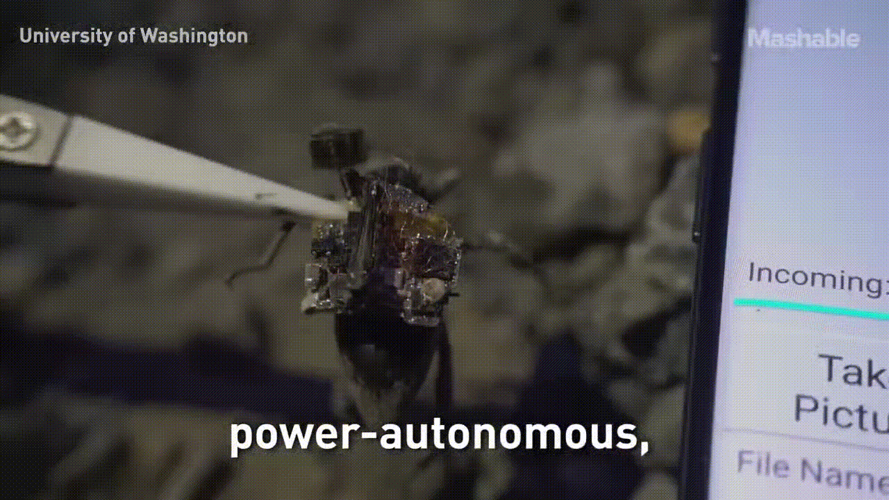 곤충의 일상 행동을 관찰하기 위해 설계된 카메라로 무선이며 기계적으로 조작이 가능하다.