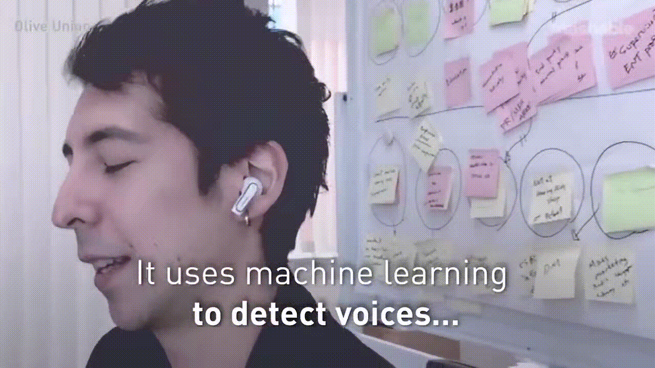Olive Pro는 사람의 목소리를 확인하고 증폭을 시키며 주변 소음도 줄여 줄수가 있다.