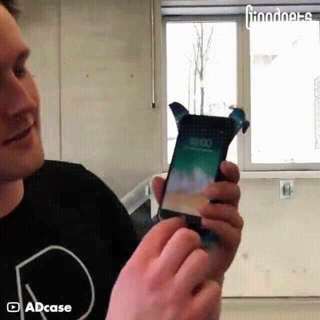 휴대폰이 떨어질때 휴대폰 모서리 부분에서 4개의 다리가 나와 지면에 떨어져도 깨지지 않게 완충 작용을 해준다.