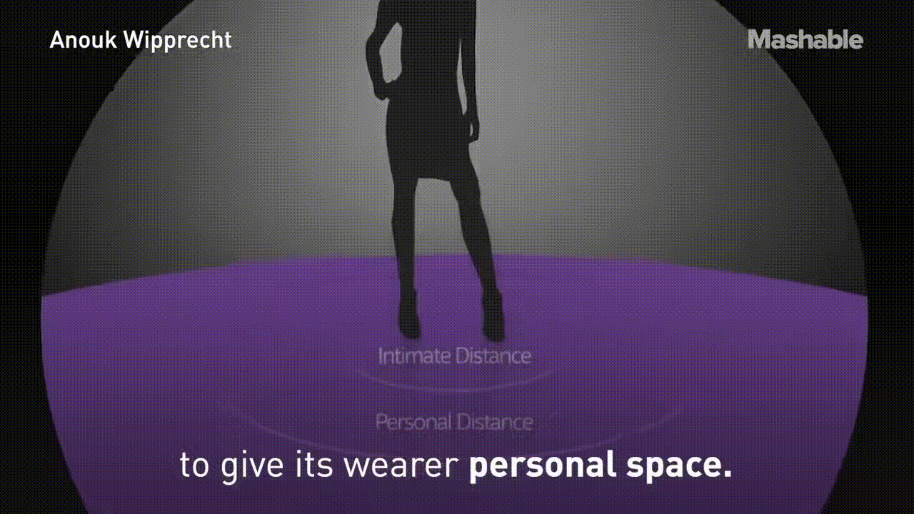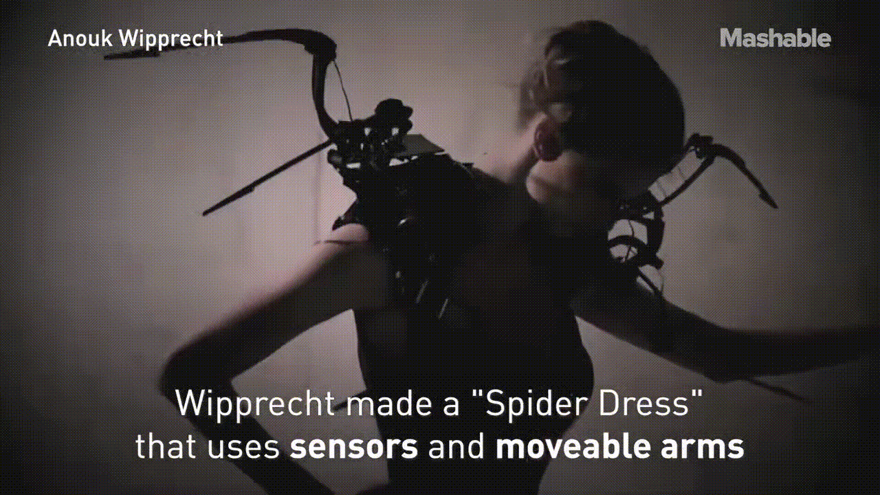 Wipprecht가 만든 "Spider Dress"는 센서와 움직이는 팔을 사용하여 이 옷을 입는 사람에게 개인적인 공간을 주었다.