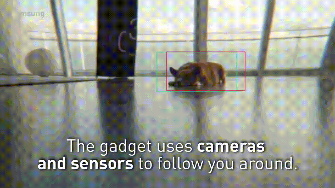 볼 형태의 로봇으로 카메라와 센서를 사용하여 사용자를 졸졸 따라다닌다.