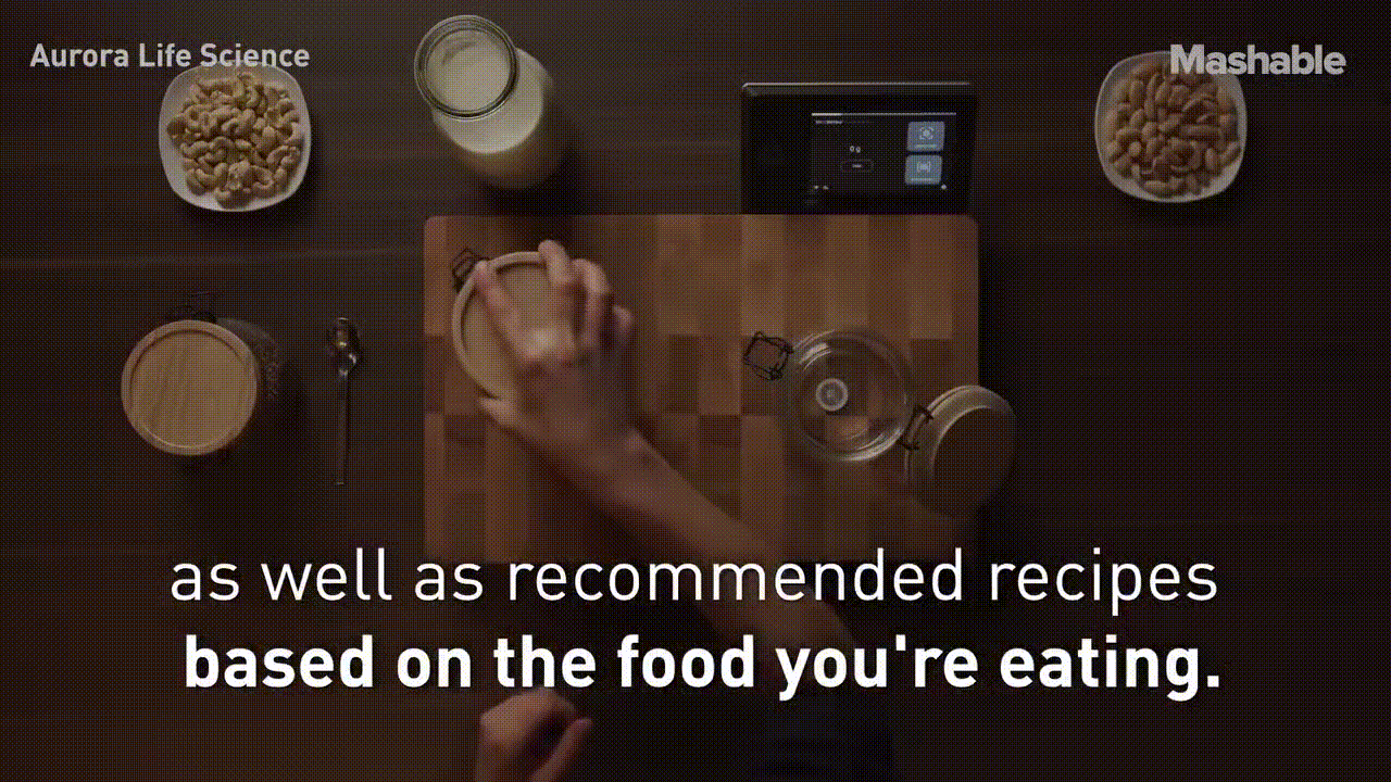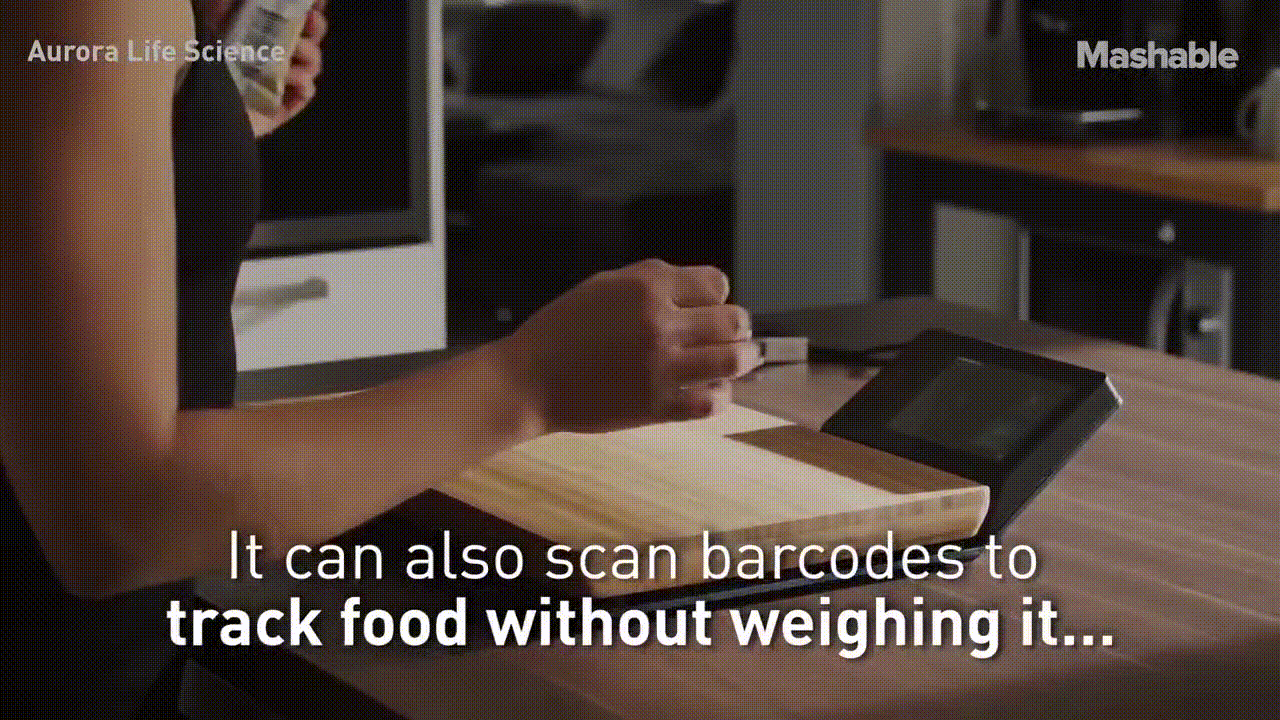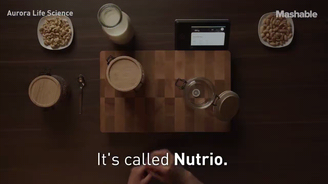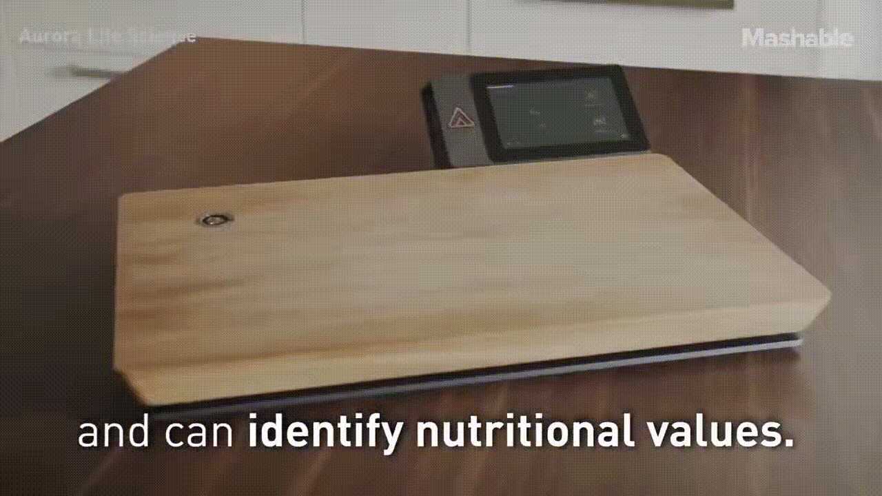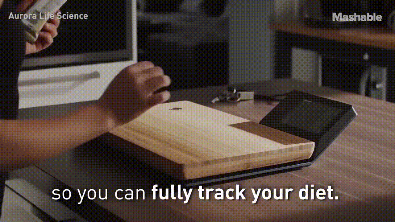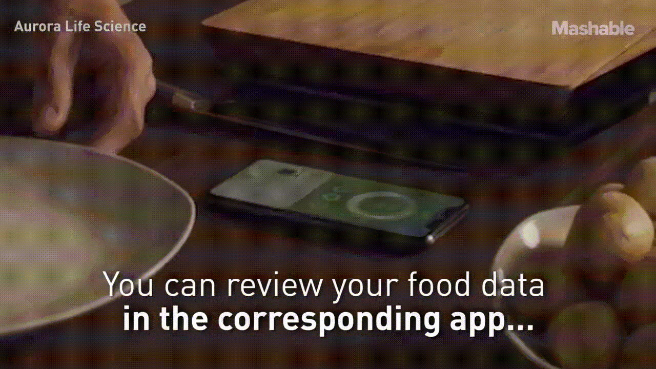 음식물을 Nutrio라는 도마에 올려놓으면 무게가 측정이 되고 영양학적인 밸류를 확인할수가 있다.