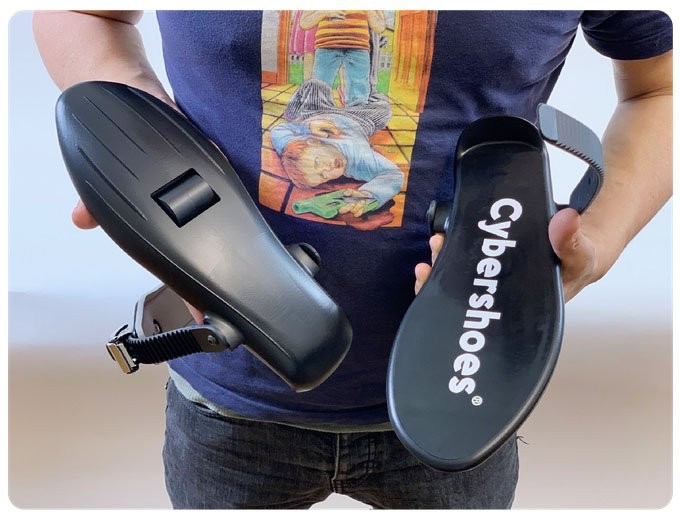 차세대 VR 프로그램에서는 사람이 직접 걷는 것을 처리할수 있고 이때 사용하는 액세서리인 Cybershoes이 있다.