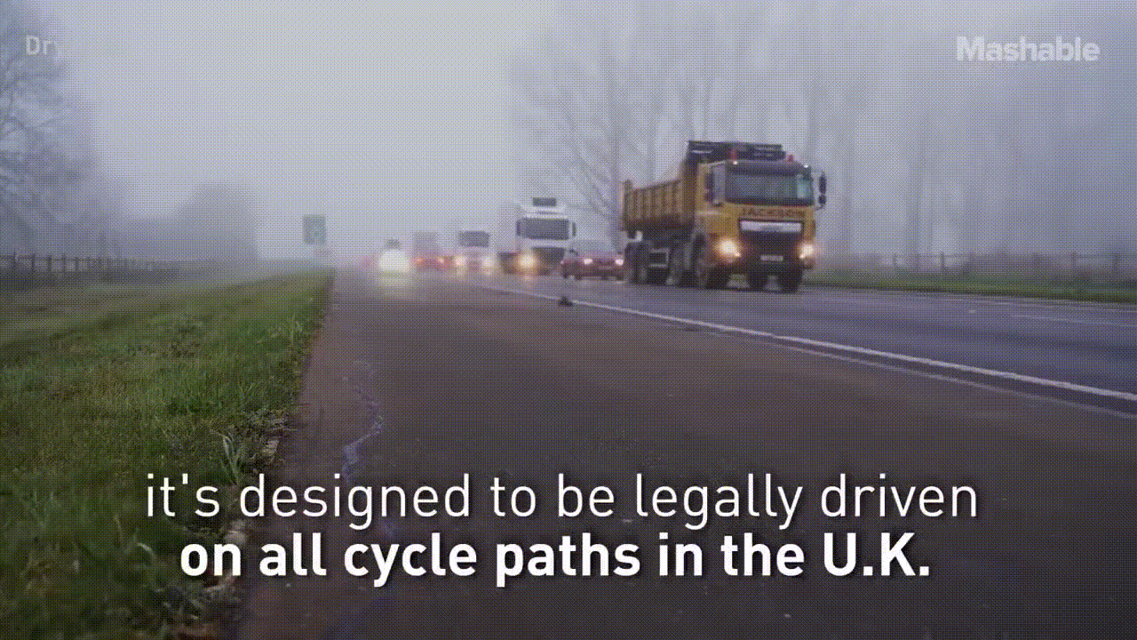 겉으로만 보면 마치 전기자동차가 같은 모습이나 실제로는 자전거이다.