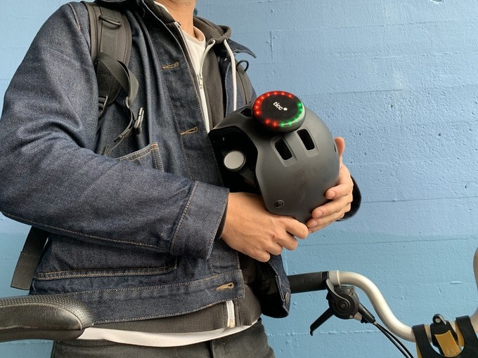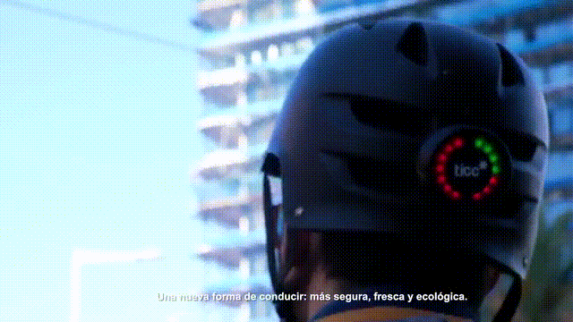 이 제품은 헬멧에 장착하는 방향 표시등으로 고개를 앞으로 까딱이면 브레이크등을 고개를 좌 또는 우로 까딱이면 해당 방향의 방향지시등이 켜진다.