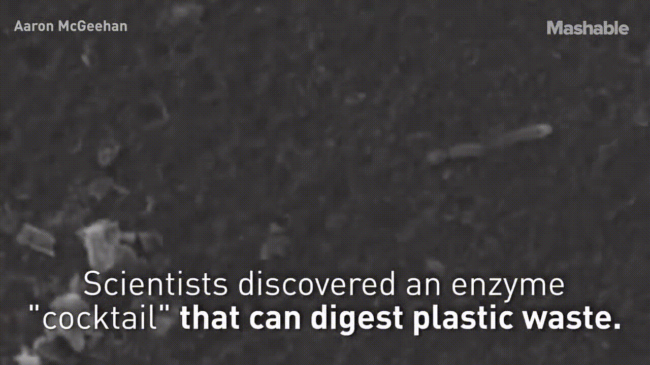 과학자들은 일반적인 플라스틱에서 많이 발겨되는 폴리머를 분해할 수 있는 2개의 결합된 효소를 발견하였다.