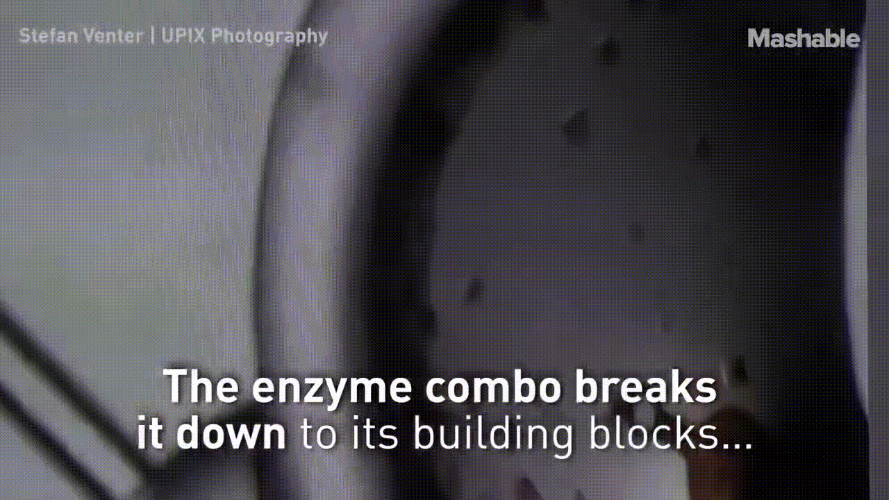 이 효소는 폴리머를 잘게 잘라 모노머로 분해하고 실제로 재활용이 가능하게끔 만들었다.