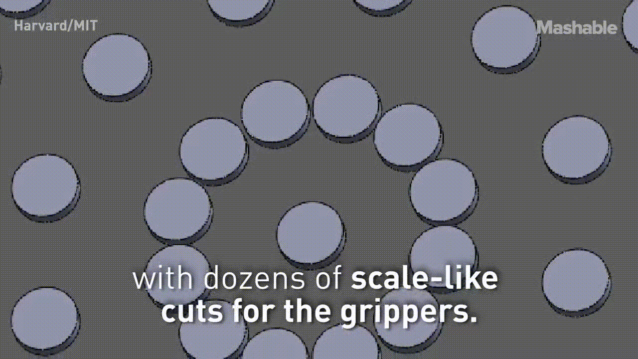 하버드와 MIT 연구원들이 일본 종이 자르기 공예인 Kirigami을 이용하여 상어비늘 모양의 gripper를 만들었다.