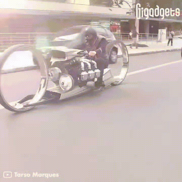 이 오토바이크는 36인치 크기의 중심축 없는 2개의 Wheel로 구성이 되어 있고 300마력의 롤스로이스 비행기 엔진을 탑재하였다.