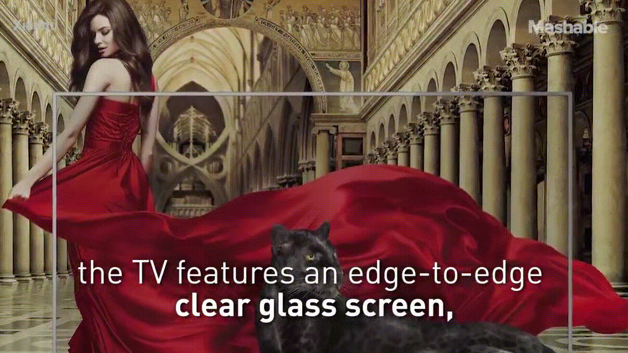 이 TV의 가장자리는 베젤없이 투명한 유리 스크린으로 되어 있는것이 특징이다.