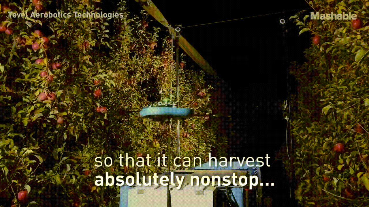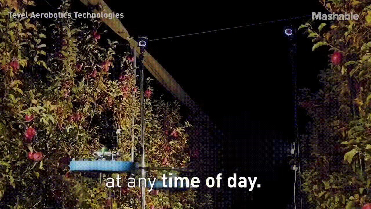 사람의 손길 없이도 하루종일 작업을 할수가 있으며 로봇은 수확상태, 과일의 양과 질등에 대한 정보를 농부에게 알려준다.