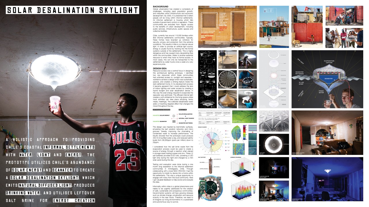 바로 "태양광담수화 채광창(Solar Desalination Skylight)" 이라는 제품으로 무제한 공급받을수 있는 태양과 바닷물을 이용하였다.