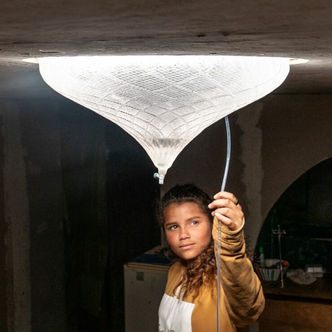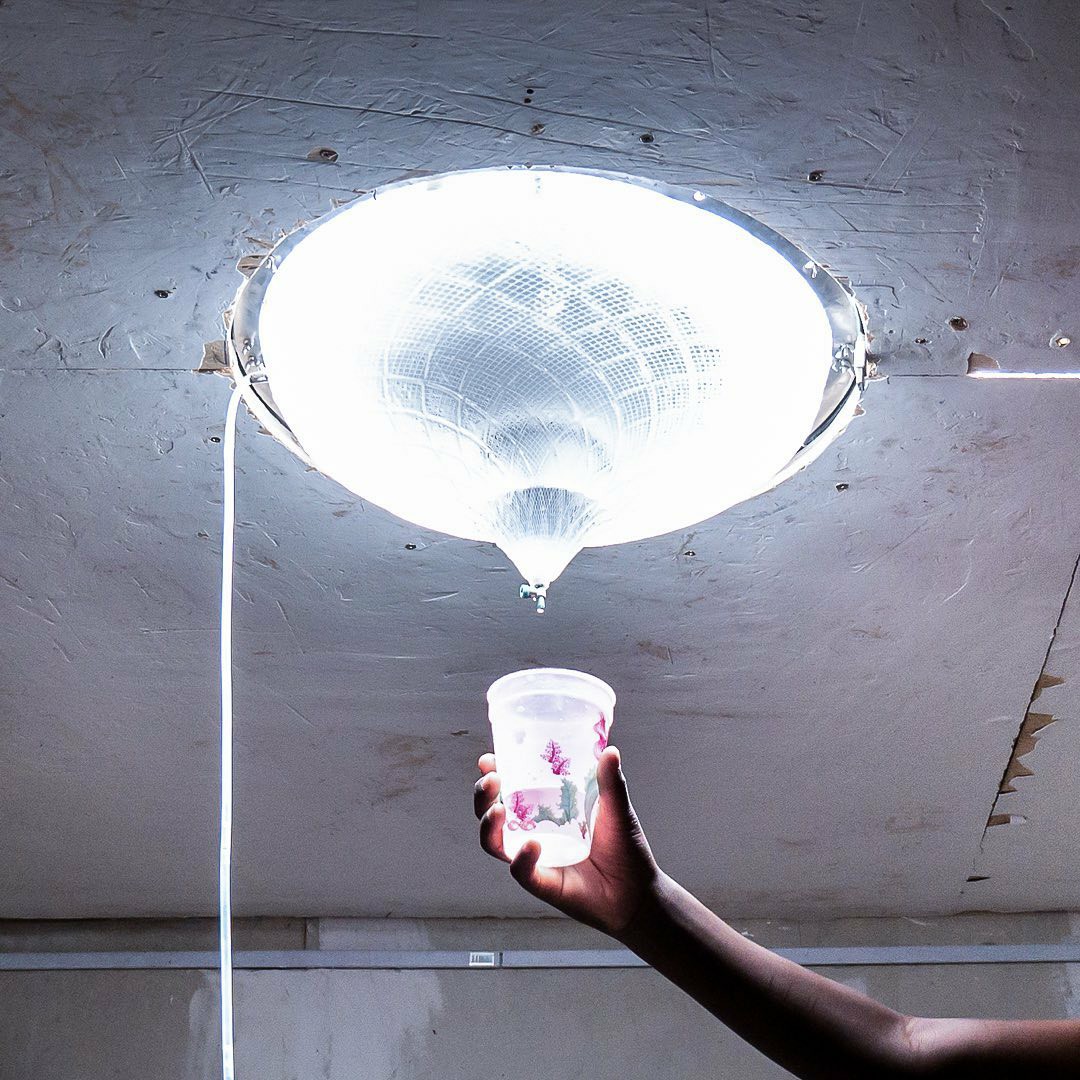 지붕에 설치한 이 제품에 바닷을을 넣으면 태양광을 집광하여 실내를 밝힐수 있고 낮에 태양광에 의해서 바닷물이 증발되면서 마실수 있는 담수를 얻을수 있다.