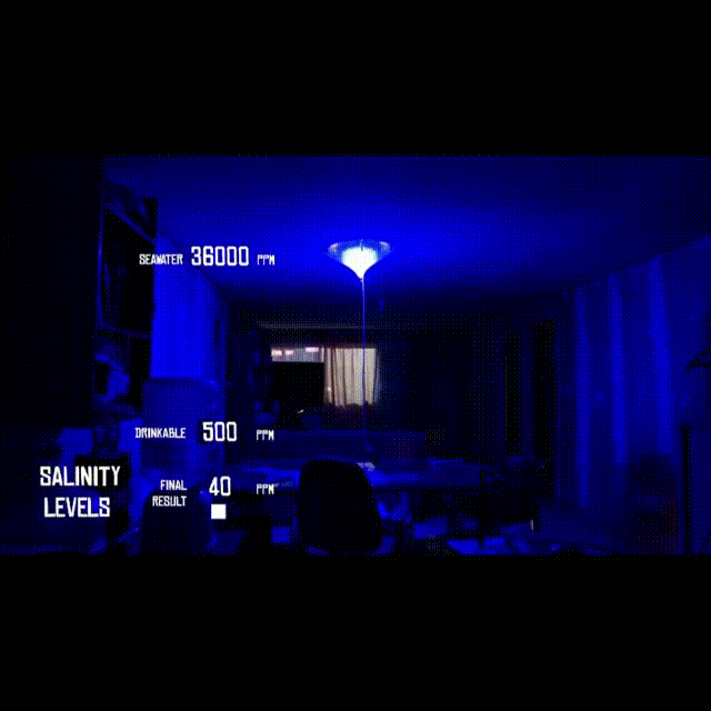 실제로 칠레에서 12시간동안 동작하면서 540ml의 정제수를 만들었고 염도수준을 36,000ppm에서 20ppm까지 낮추었다.