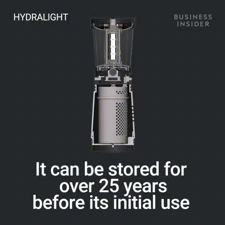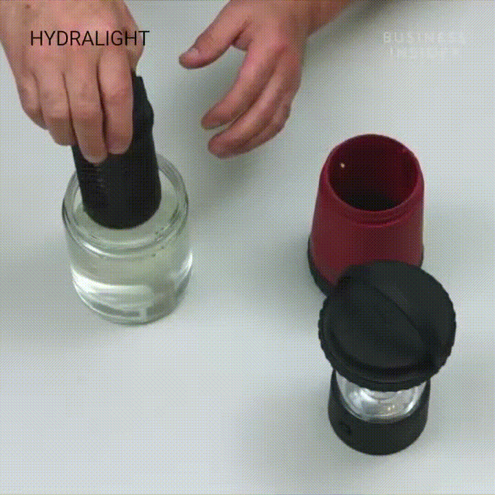 이 랜턴은 배터리 없이 에너지 셀을 사용하는데 소금물에서 이온화된 물질들이 셀을 넘나들며 전기를 만들어낸다.