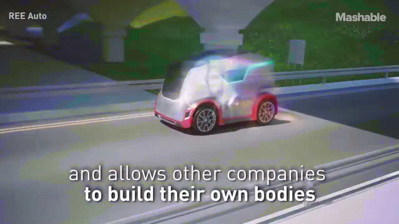 이스라엘 스타트업인 REE에서 개발된 전기차로 챠량은 평평하고 확장가능하며 어떤것이든 적용이 가능하며 이 업체의 플랫폼에 다른 업체가 만든 본체를 끼워서 설치할수도 있다.